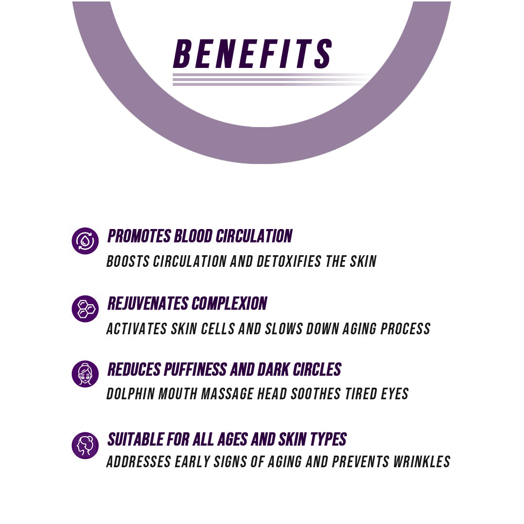 The dolphin mouth of our tool can be used to massage and soothe tired eyes, reducing puffiness and dark circles.